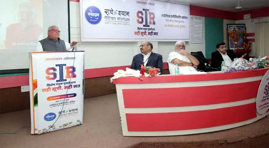 GREATER NOIDA NEWS: नॉलेज पार्क-3 स्थित आईटीएस इंजीनियरिंग कॉलेज में बुधवार को विशेष गहन पुनरीक्षण (एसआईआर) पर एक विचार गोष्ठी हुई। इसमें पूर्व राज्यपाल व पूर्व केंद्रीय मंत्री कलराज मिश्र ने कहा कि आयोग का यह कार्यक्रम लोकतंत्र का वास्तविक स्वच्छता अभियान है। यह स्वच्छता अभियान देश में छिपे बैठे उन घुसपैठियों को बाहर करने का है, जो देश में आकर छिप गए हैं और मतदाता सूची में अपना नाम शामिल कराया है। कार्यक्रम का आयोजन श्री राधेश्याम चैरिटबल फांउडेशन की तरफ से किया गया।